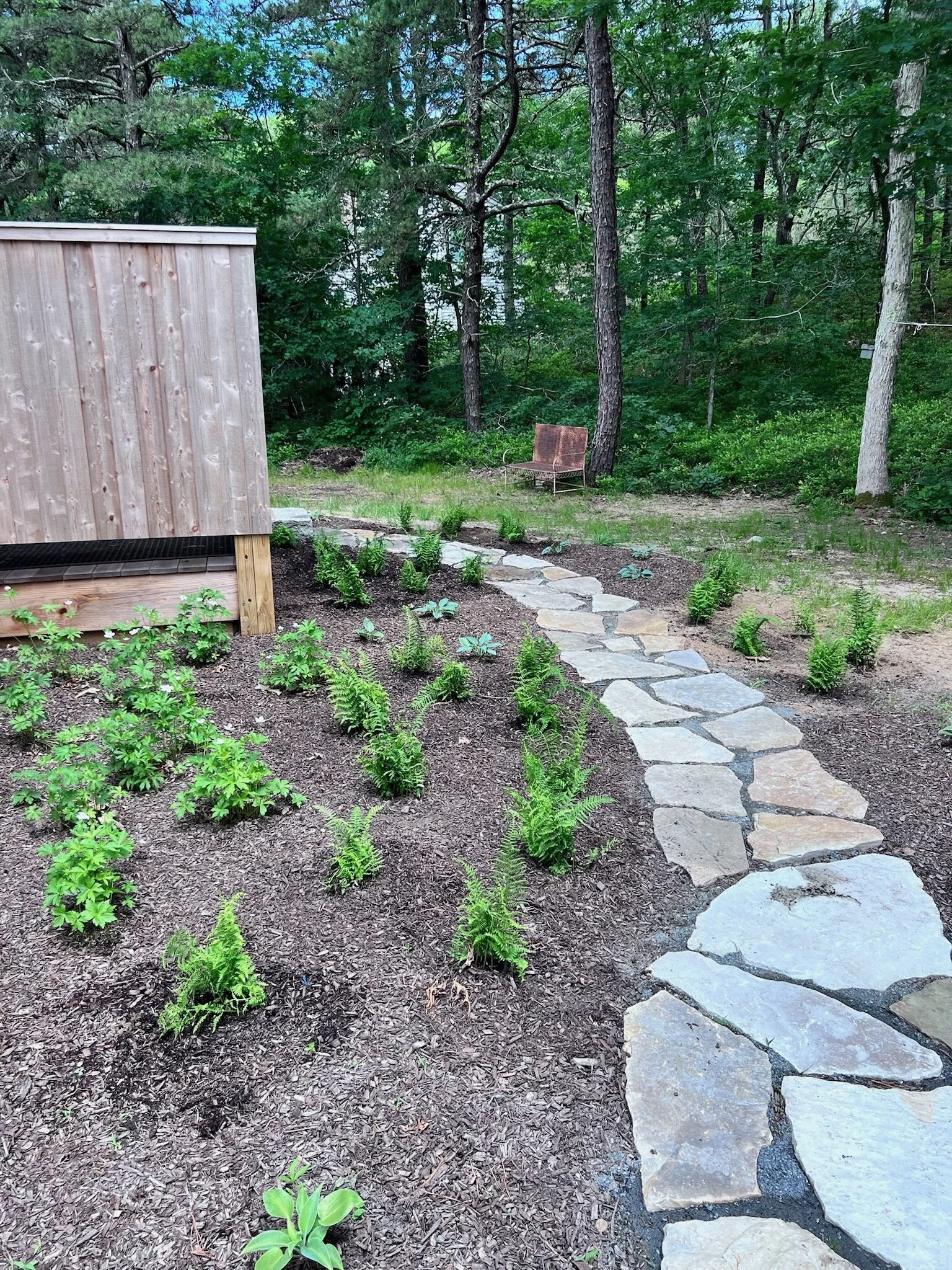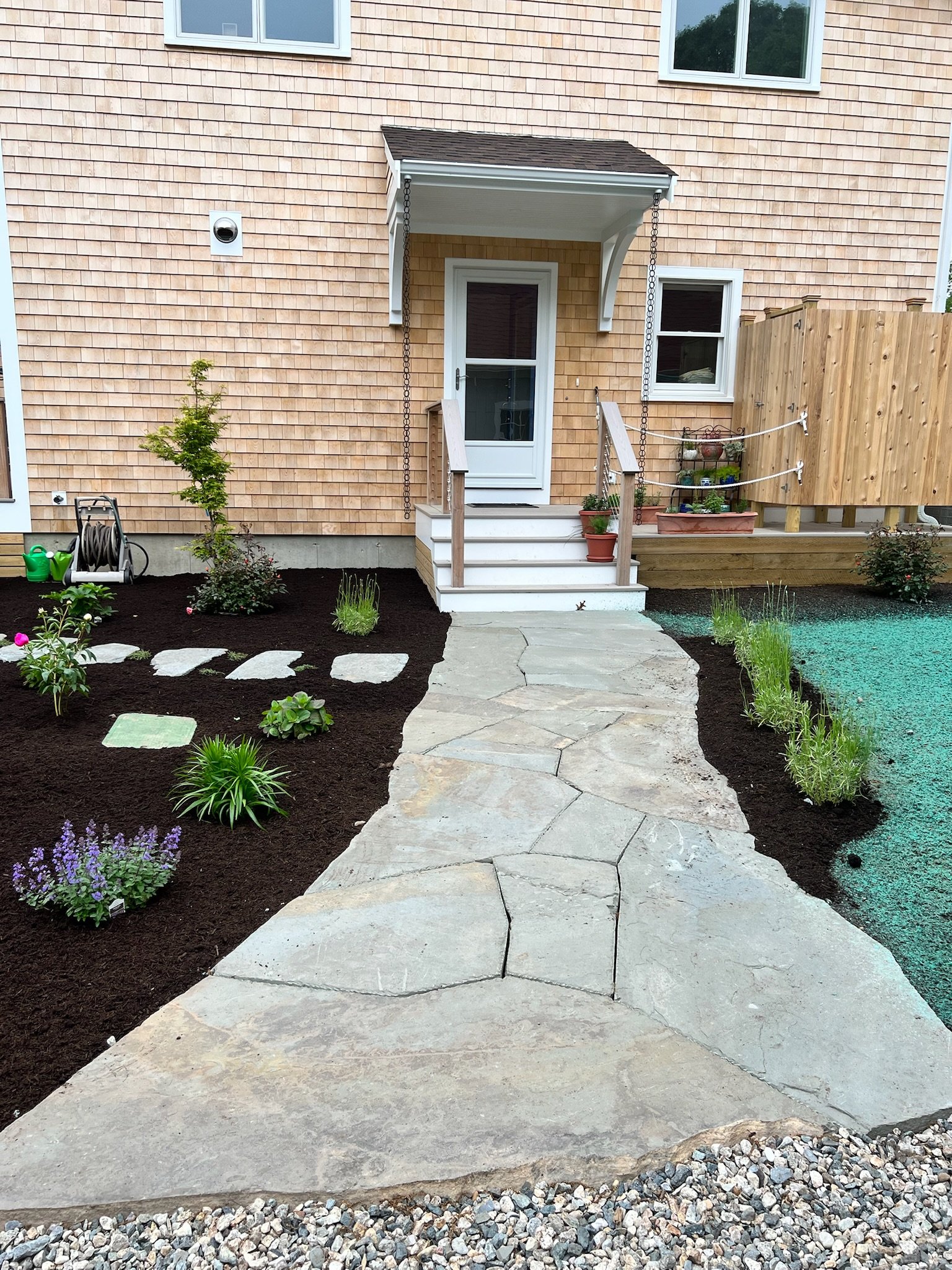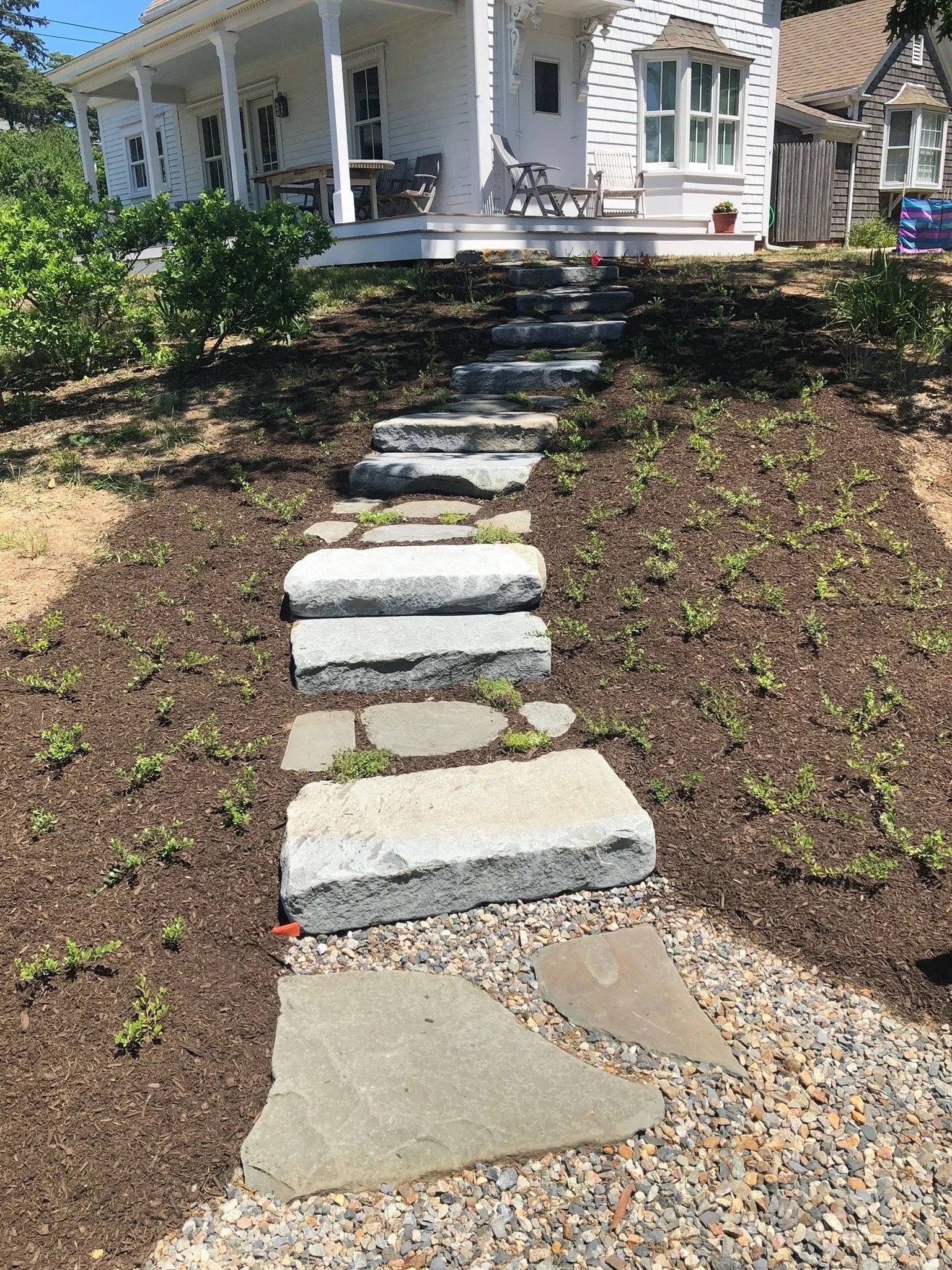 ….patios for gathering, walkways that wind through native gardens, and steps that feel like they’ve always belonged. With a deep understanding of hardscape design, she builds pieces that fit the Cape Cod landscape as naturally as the tide meets the shore.